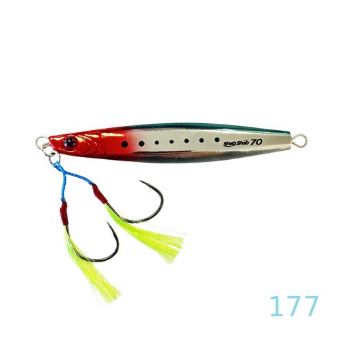 Shout ShabShab Jig je metalni jig namijenjen slow pitch i vertical jigging tehnici u moru. Poseban, blago zakrivljen i širok profil omogućuje zavodljivo lelujanje i atraktivan pad koji provocira grabljivice na napad.